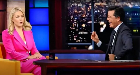In a stunning live television confrontation, late night host Stephen Colbert unleashed a scathing critique of Donald Trump and his communications director, Karoline Leavitt, igniting a firestorm of political outrage and entertainment. What began as a comedic segment quickly morphed into a viral takedown that has left the political landscape buzzing.